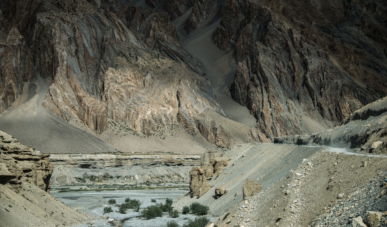 Manali-Leh highway is one of two only roads leading to the most remote region of India - the old kingdom of Ladakh. At 479km, it takes at least 20 hours, but usually 2 days, to travel through vast mountainous desert with great number of high mountain passes and deep valleys in between. While its highest elevation is at 5,328m at Tanglang La mountain pass, its average elevation is just over 4000m.