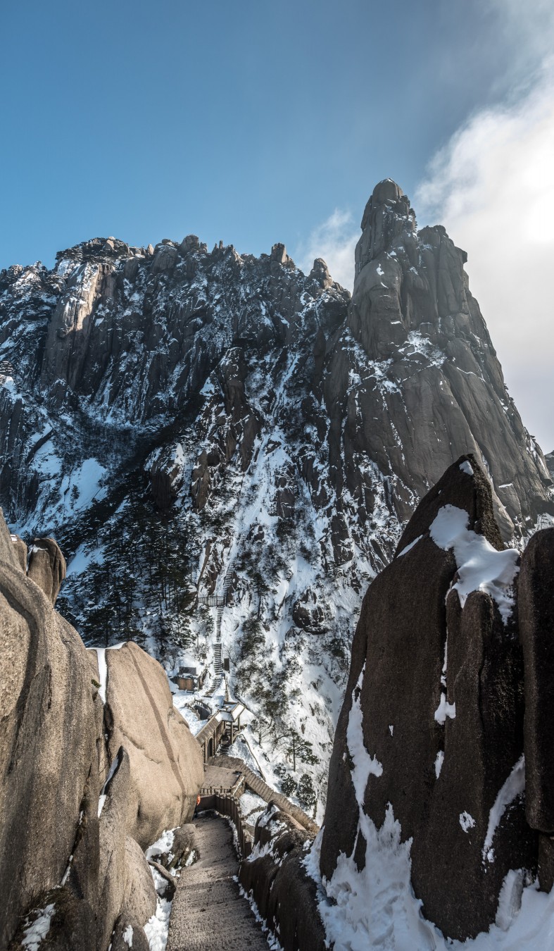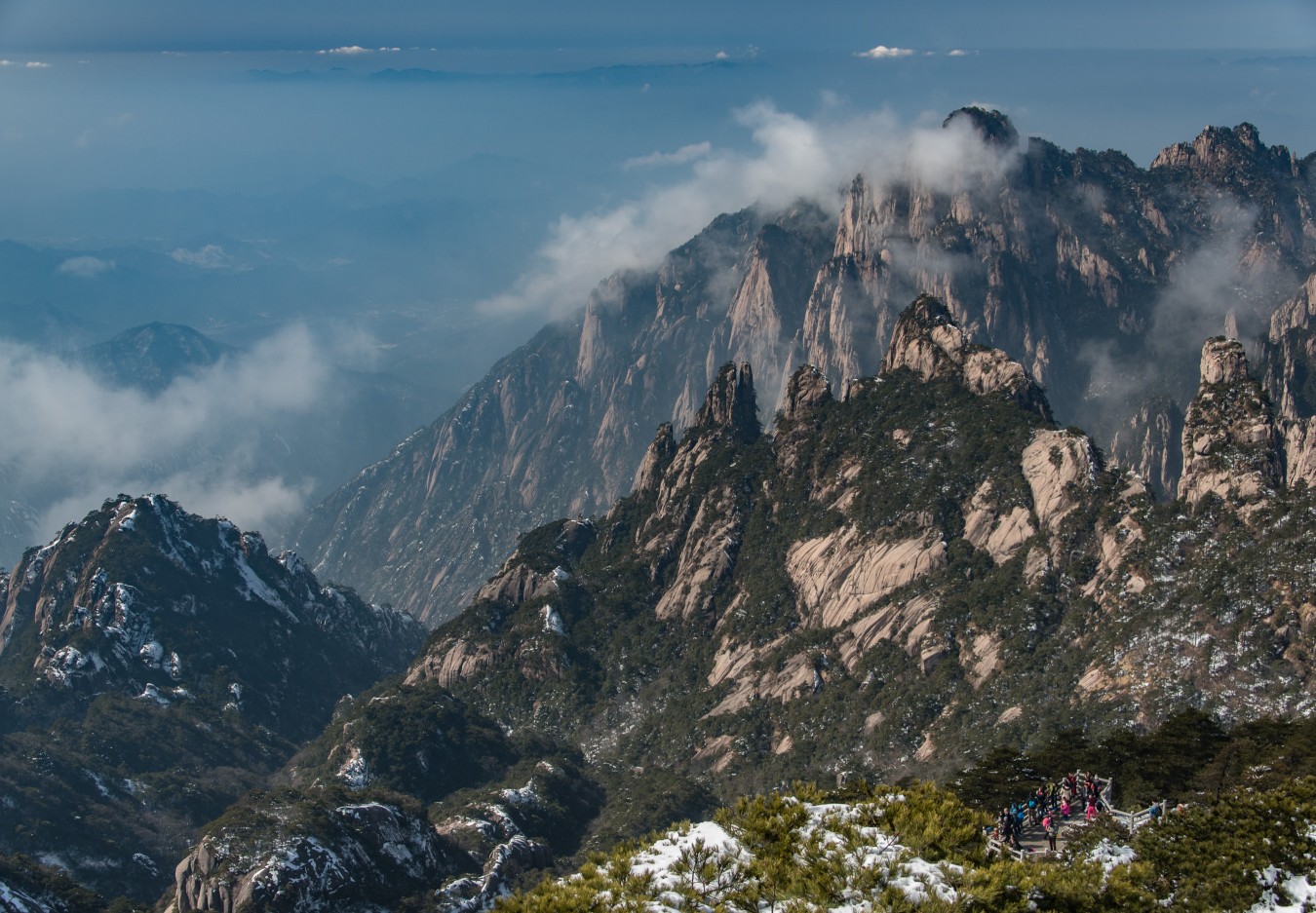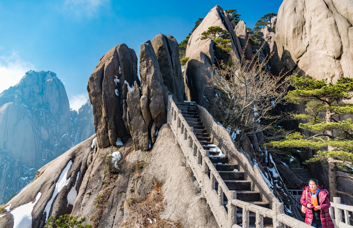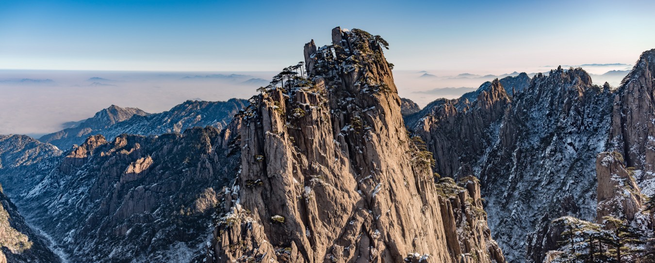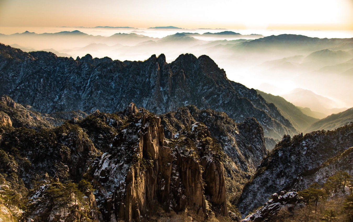 Yellow Mountains, known as HuangShan is a mountain range in southern Anhui province in eastern China, not very far from the West Lake. The area is well known for its scenery, sunsets, peculiarly-shaped granite peaks, Huangshan Pine trees, hot springs, winter snow, and views of the clouds from above. Just as the West Lake, Huangshan is a frequent subject of traditional Chinese paintings and literature.