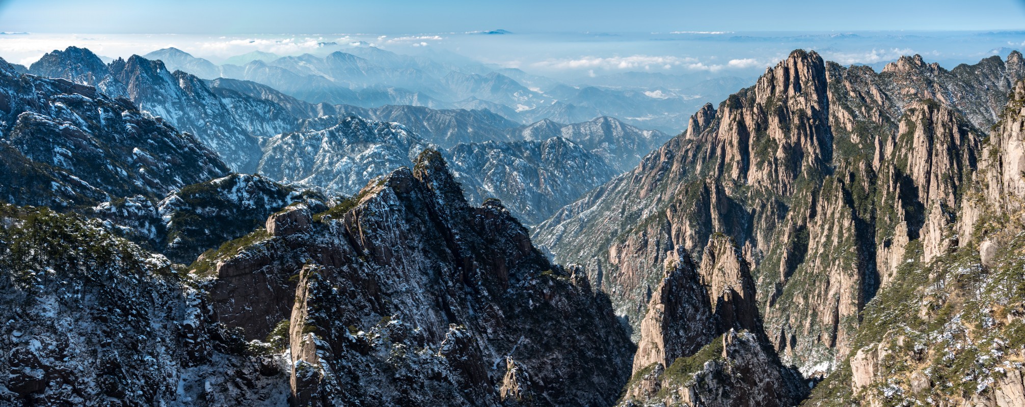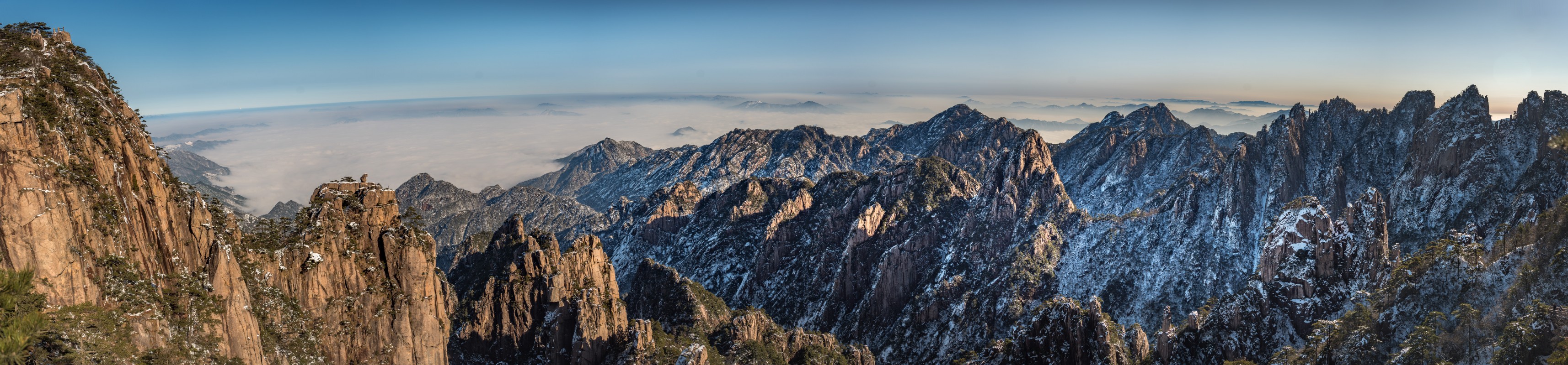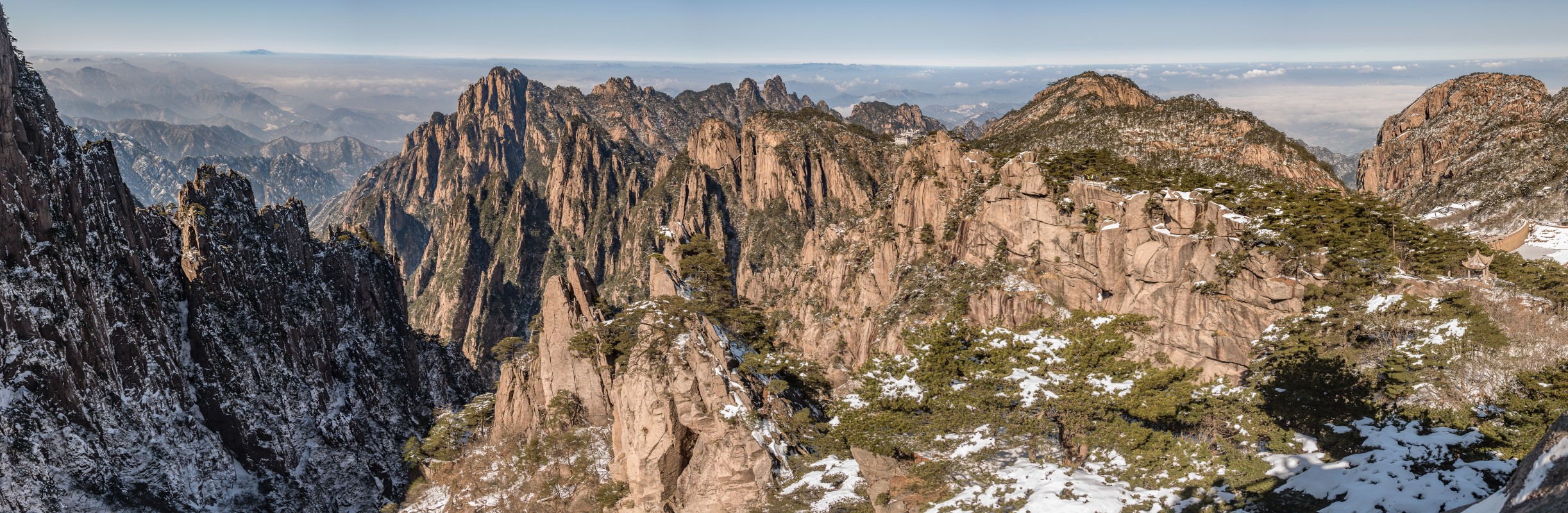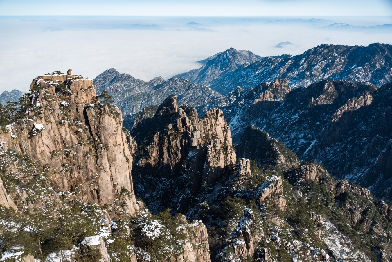 Yellow Mountains, known as HuangShan is a mountain range in southern Anhui province in eastern China, not very far from the West Lake. The area is well known for its scenery, sunsets, peculiarly-shaped granite peaks, Huangshan Pine trees, hot springs, winter snow, and views of the clouds from above. Just as the West Lake, Huangshan is a frequent subject of traditional Chinese paintings and literature.