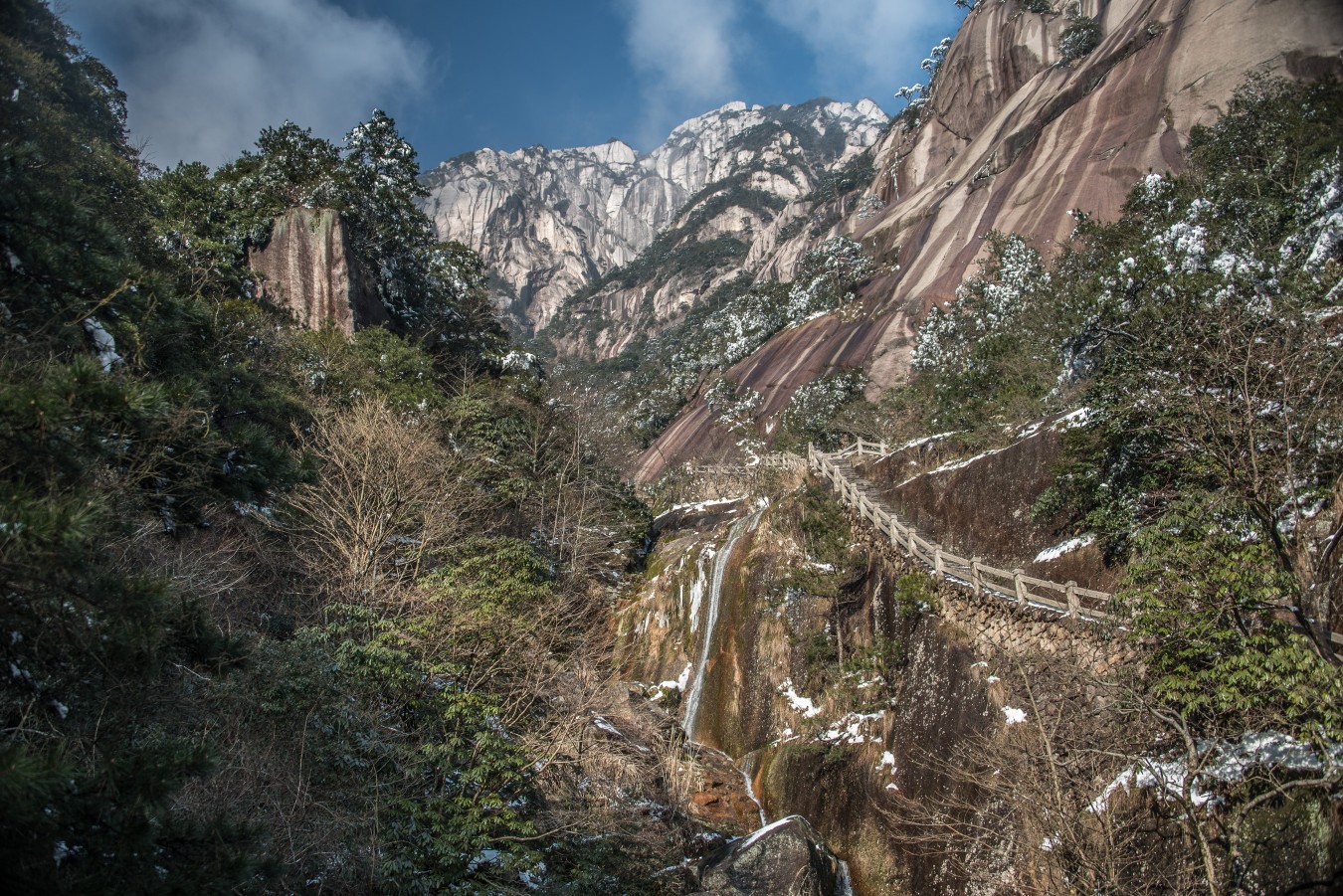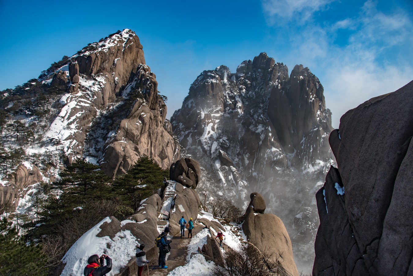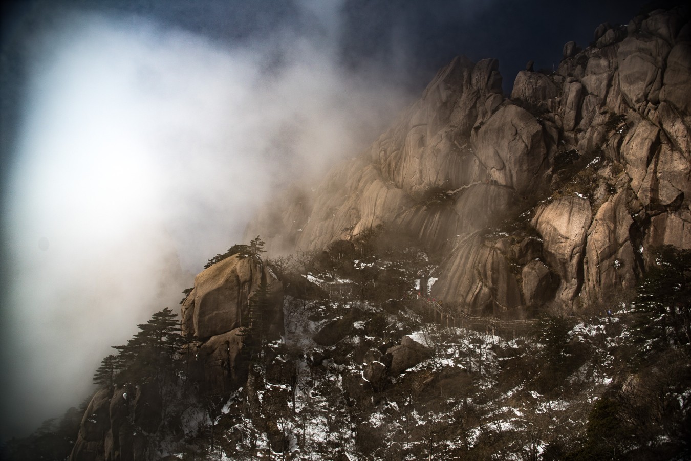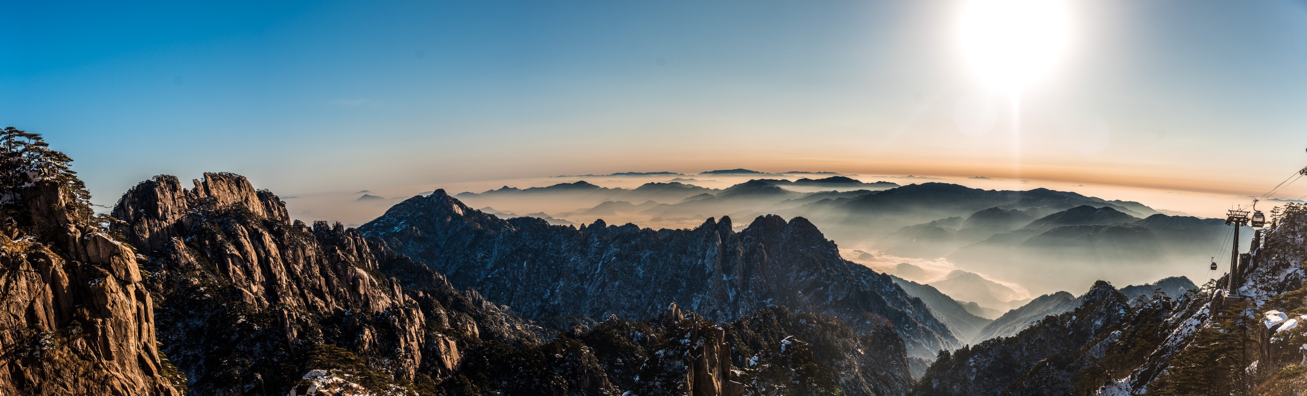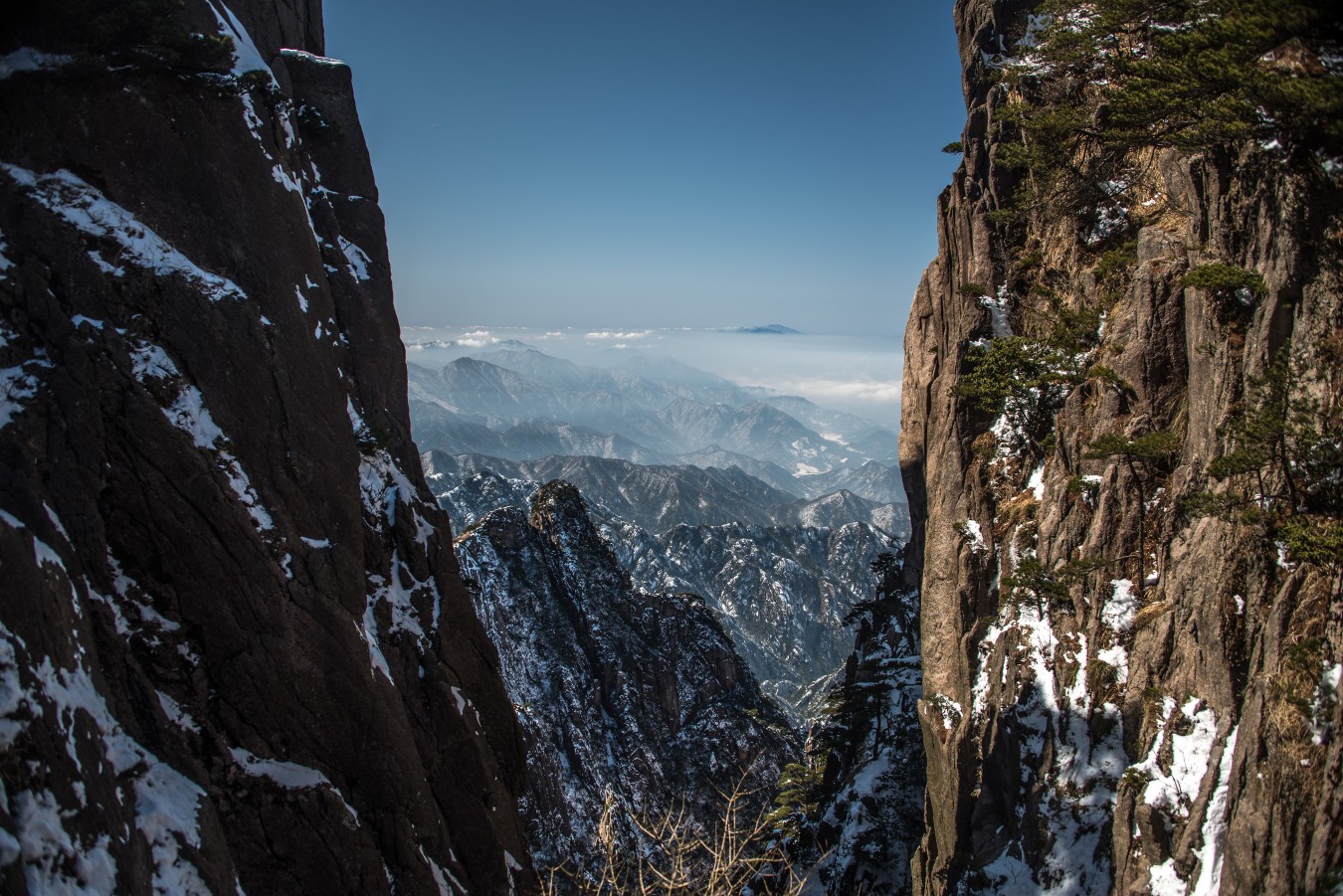 Yellow Mountains, known as HuangShan is a mountain range in southern Anhui province in eastern China, not very far from the West Lake. The area is well known for its scenery, sunsets, peculiarly-shaped granite peaks, Huangshan Pine trees, hot springs, winter snow, and views of the clouds from above. Just as the West Lake, Huangshan is a frequent subject of traditional Chinese paintings and literature.